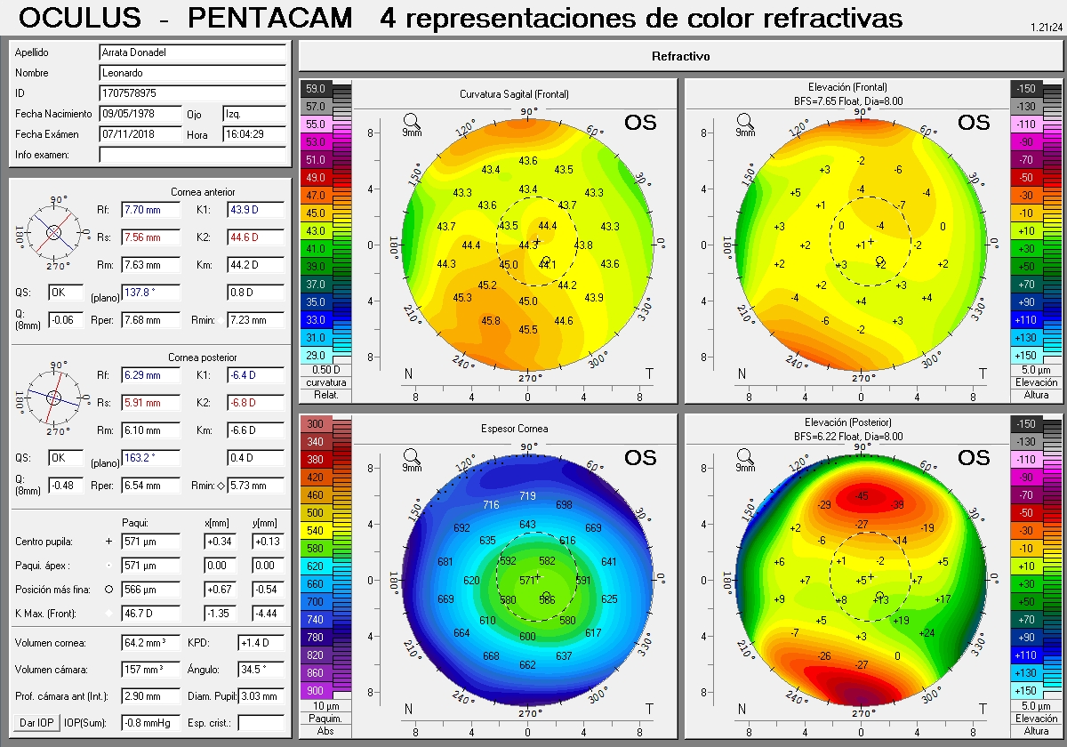 Lentes de Contacto: Pentacam, microscopía espcular y OCT de córnea.